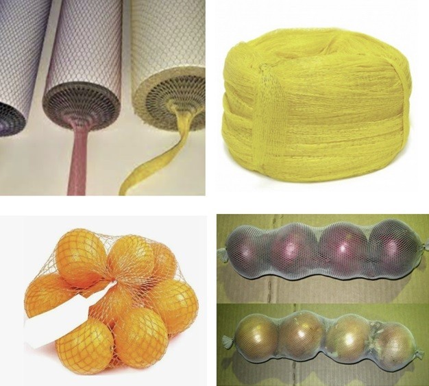 Плетёные на отдельном оборудовании сетчатые мешки (в каталогах производителей – мешки-сетки) собирают в стопки от 10 до 1000 штук и отправляют под пресс. На нём оператор оборачивает кипы в полиэтиленовую или полипропиленовую плёнку, скрепляет пачку лентой. Для визуальной идентификации упакованных сеток на кипу прикрепляют образец.