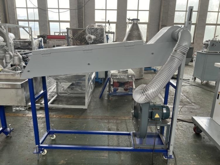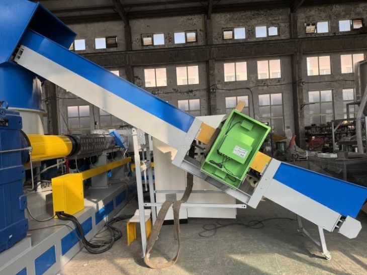 Линия состоит из нескольких узлов, которые работают в связке благодаря множеству датчиков и ПЛК. Упаковки и другие типы пластиковой пленки попадают в измельчитель, где ножи рассекают их на мелкие кусочки, затем в резервуаре для отмывания с них удаляются загрязнения и частицы краски, обеспечивая на выходе исключительно чистую пленку без каких-либо примесей. Далее измельченное сырье проходит через экструдер и гранулятор, где под действием давления и высокой температуры формирует гранулы необходимой фракции. Готовое сырье выгружается и может использоваться сразу после гранулирования.