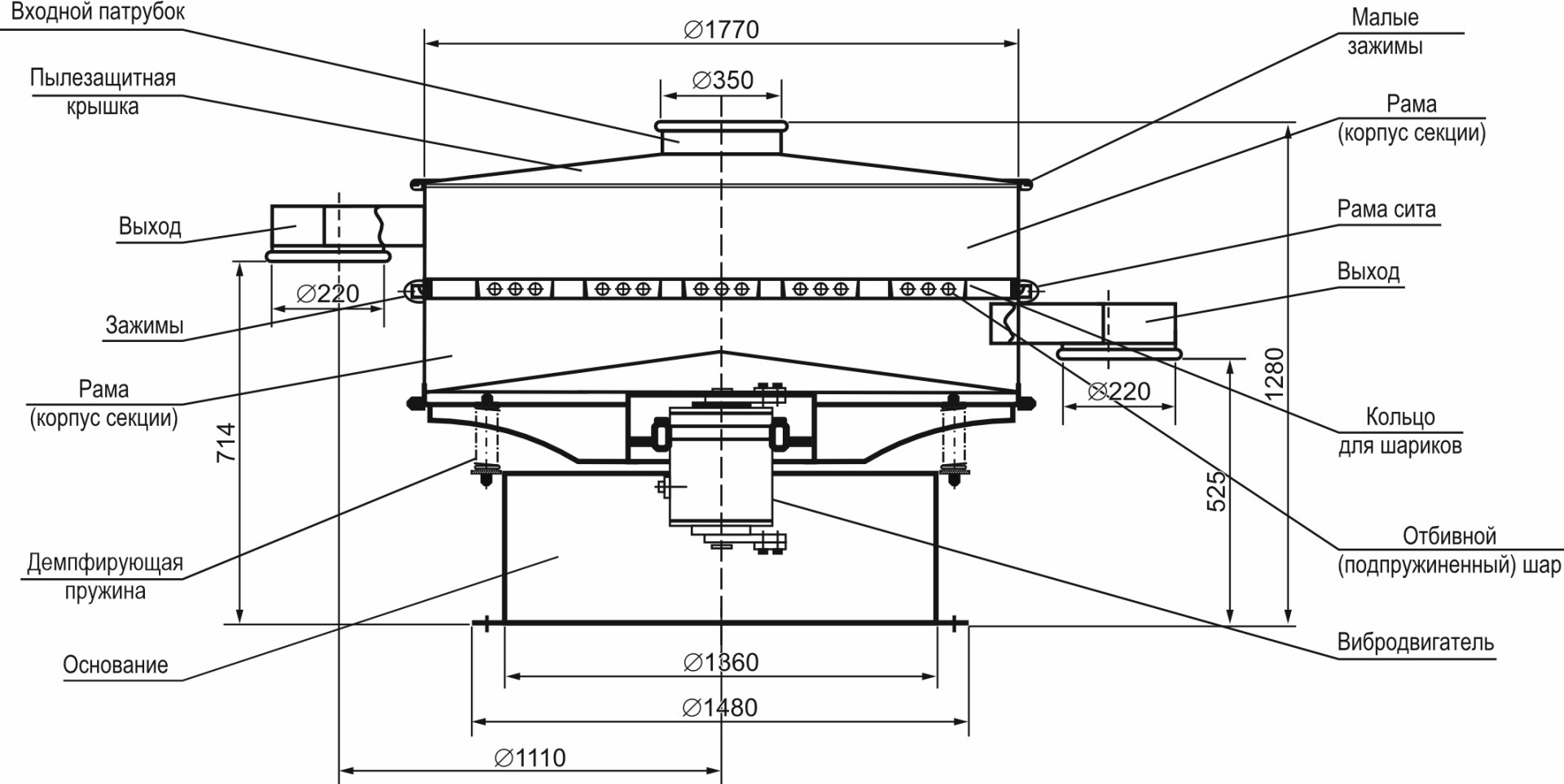 | Диаметр сита (мм) | 1770 |
