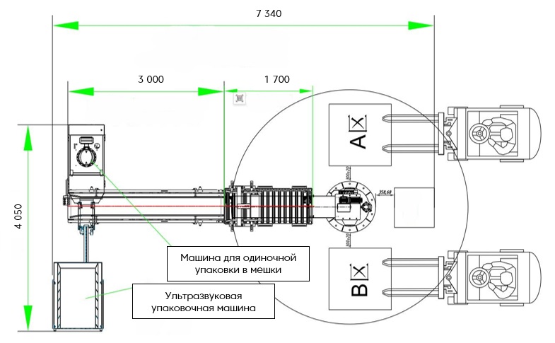 | Станция паллетирования | В зоне A и зоне B |