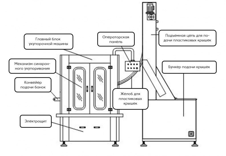 | Габаритные размеры укупорочной машины (мм) | 1360 x 950 x 2000 | |