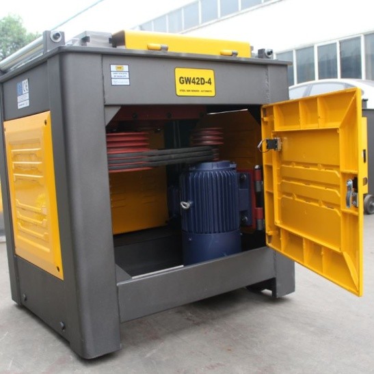 Гибочный станок для арматуры GW42D-4 конструктивно представляет собой металлический шкаф с дверцей, внутри которого расположен механизм, включающий в себя электродвигатель, редуктор, устройство переключения передач. В верхней части станка находится планшайба с боковыми панелями для установки гибочных пальцев. Автоматический режим позволяет сгибать профиль под заданным углом. В ручном режиме угол изгиба контролируется оператором.