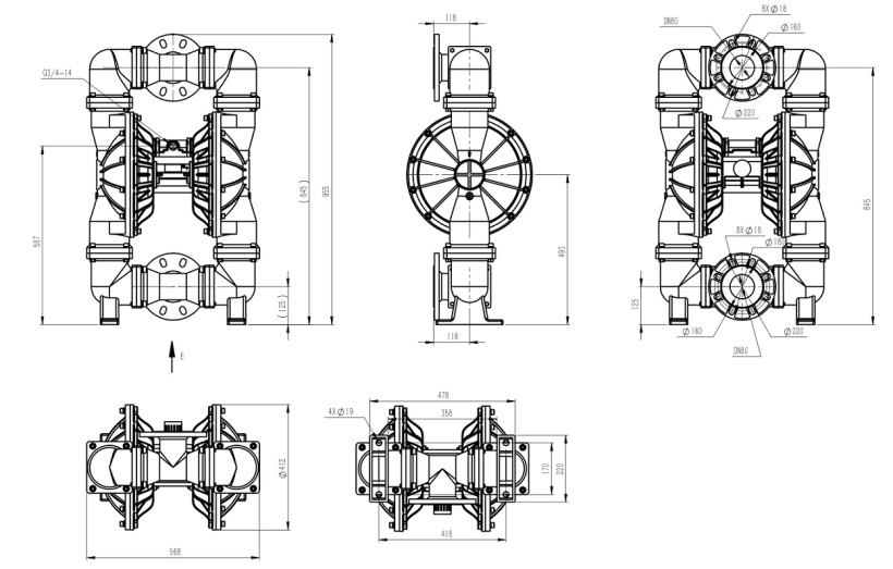 Диаметр входного/выходного отверстия (DN) | 80 | |
