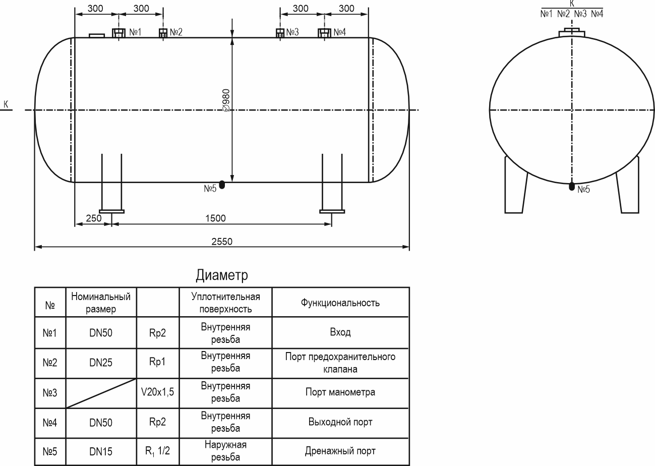 | Испытательное давление сосуда (МПа) | 1,2 | |