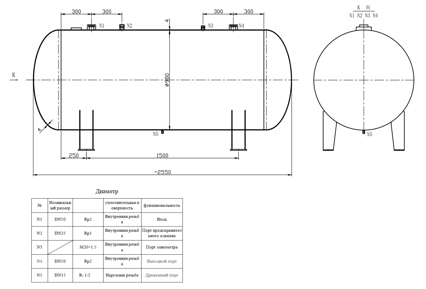 Испытательное давление сосуда (МПа) | 1,2 | |