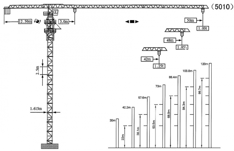 | Грузоподъемность на максимальном вылете (т) | 1 |