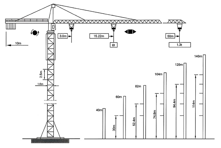 | Грузоподъемность на максимальном вылете (т) | 1,3 |