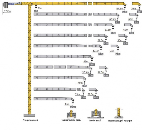 | Балласт контрстрелы | 2800-2100-1800 | ||||