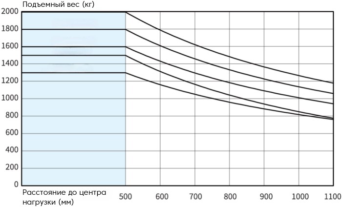 | Расстояние от спинки вил до центра тяжести (мм) | 500 |